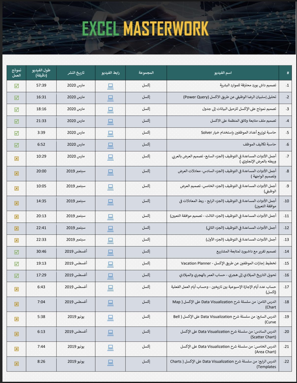 ملف يضم 75 درس تعليمي فيديو لبرنامج الاكسل باللغة العربية.